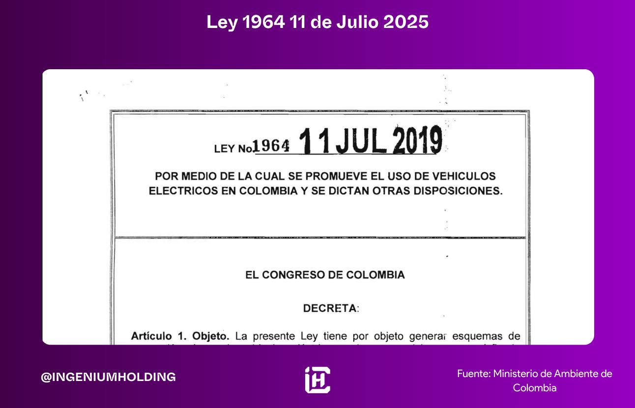La Ley 1964 de 2019, artículo 10, obliga a que los proyectos nuevos incluyan la acometida y la infraestructura mínima que permita la instalación de cargadores en el futuro.
