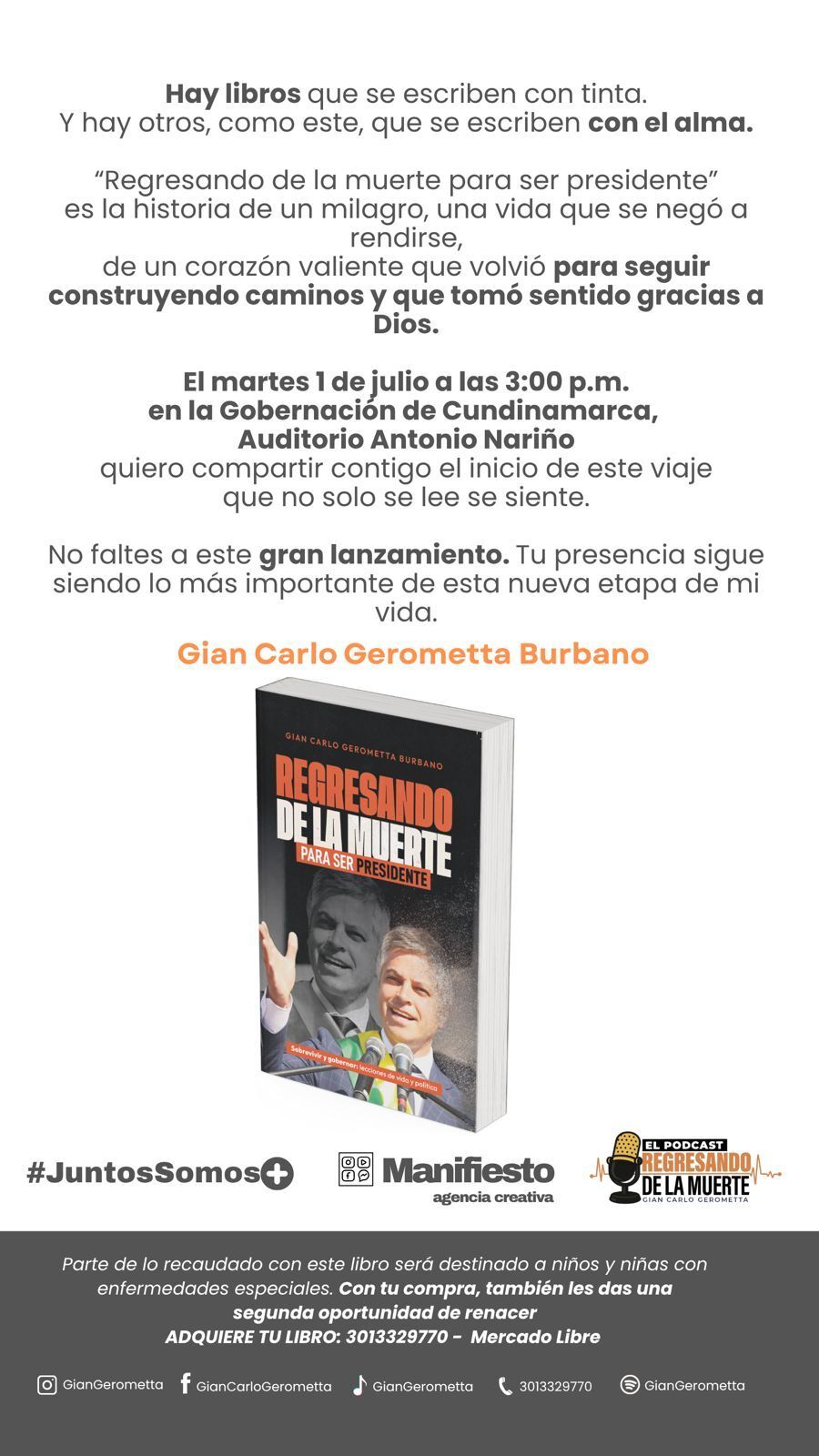 2️⃣ Si vives, trabajas o tienes relación con Mosquera - Cundinamarca, seguramente conoces a Gian Carlo, pero este libro te permitirá ver otra faceta de un ser humano que, como todos nosotros, tiene miedos, esperanzas y fe en Dios.