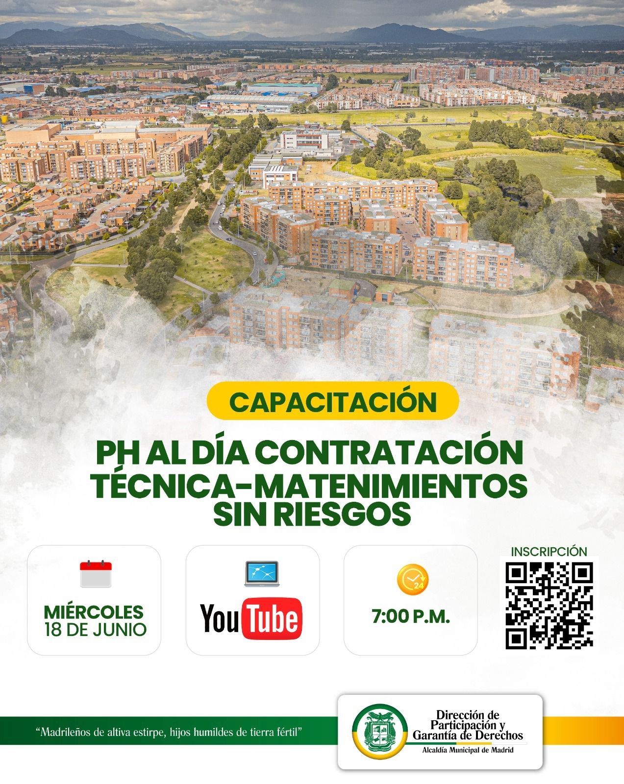 Aprende a contratar correctamente y planificar mantenimientos en tu copropiedad. Evento virtual con certificación, organizado por la Alcaldía de Madrid, Cundinamarca.